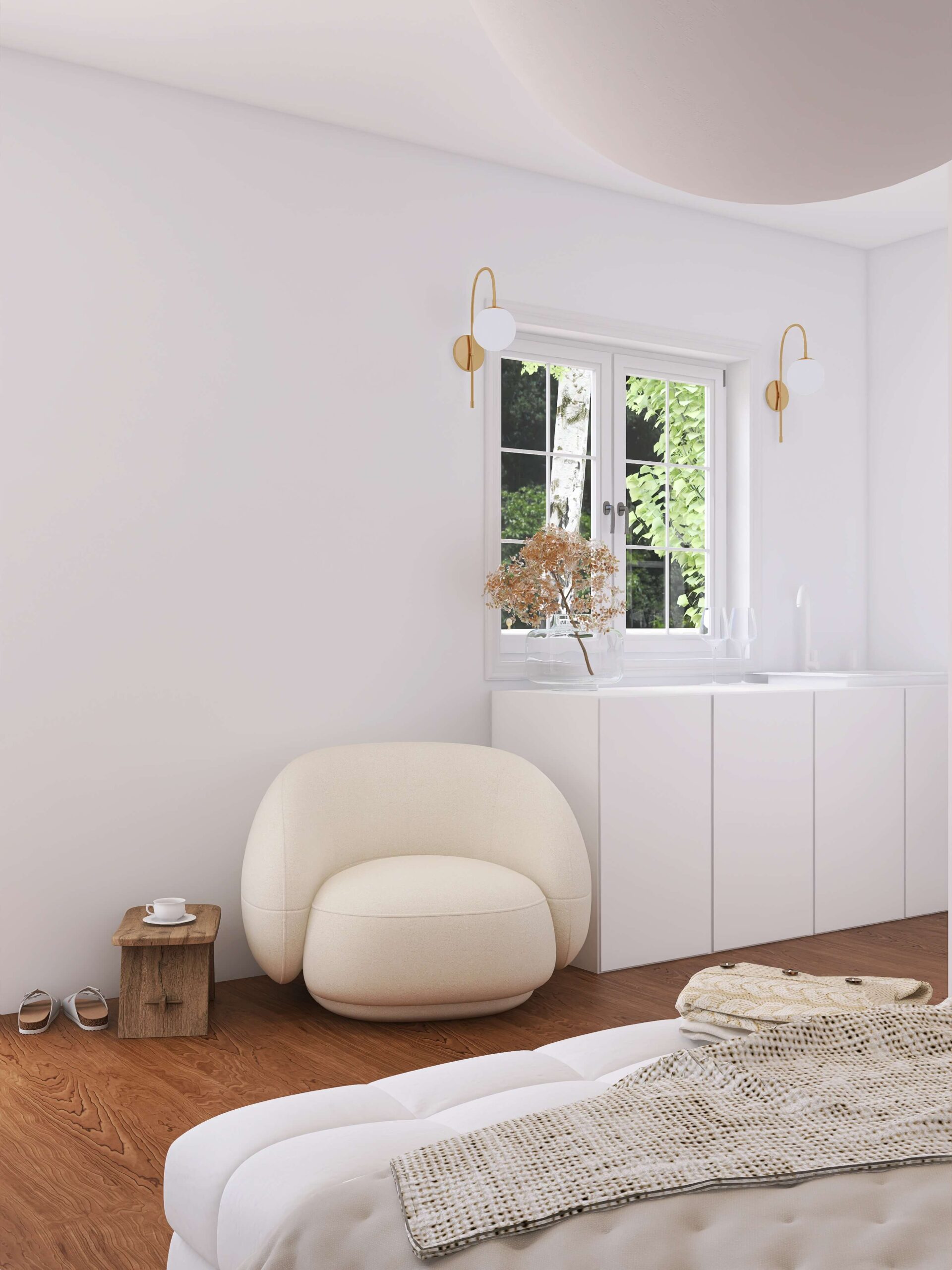Dieses kleine Ferienhaus vereint klare Formen mit warmen Naturmaterialien und schafft so eine Atmosphäre der Leichtigkeit und Ruhe. Viel Tageslicht, helle Textilien und reduzierte Möbel lassen den Raum offen wirken und laden zum Verweilen ein. Das Ergebnis ist ein harmonisches Interior Design, das Natürlichkeit, Erholung und zeitlose Eleganz vebindet.